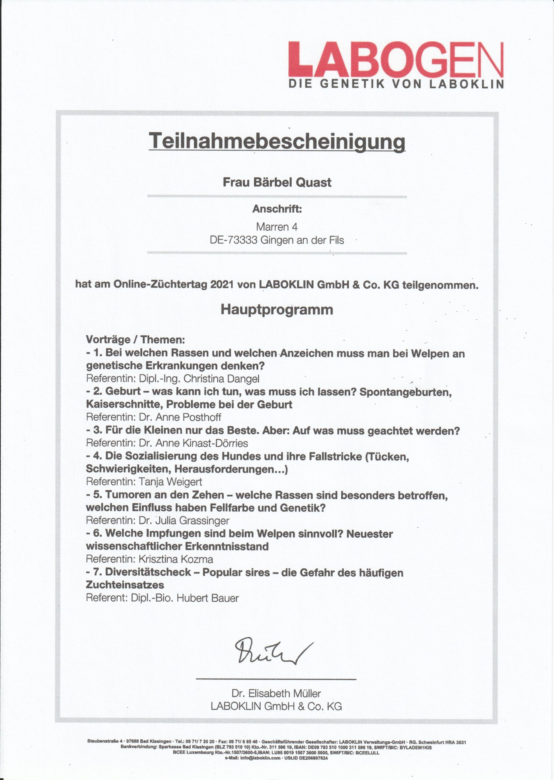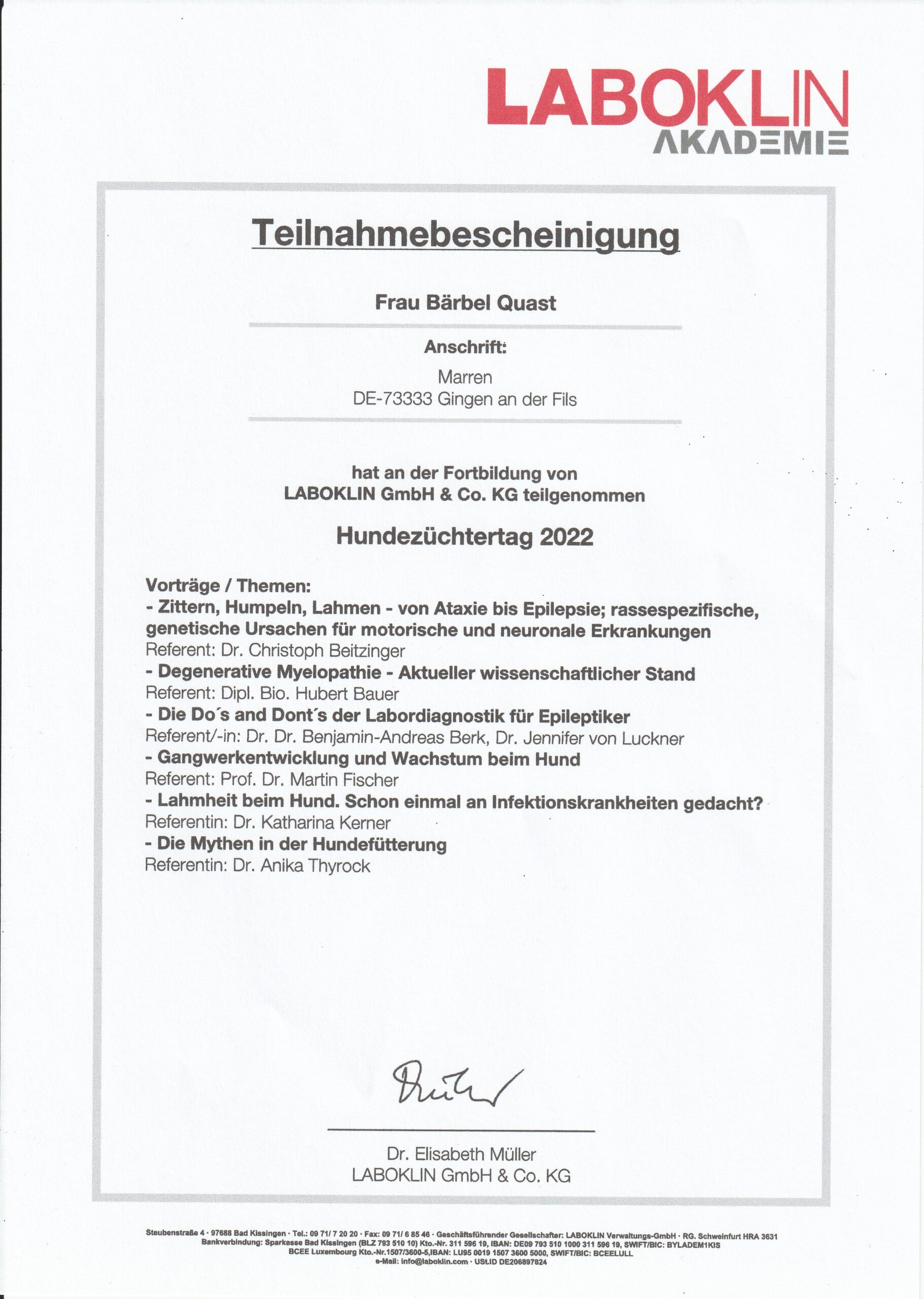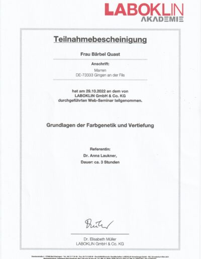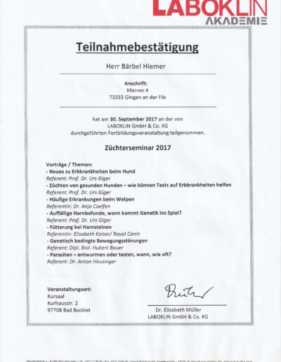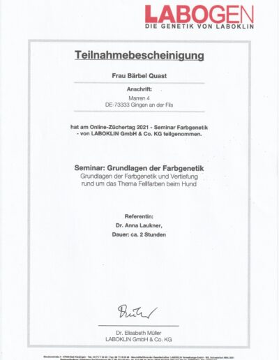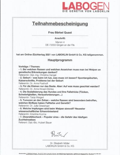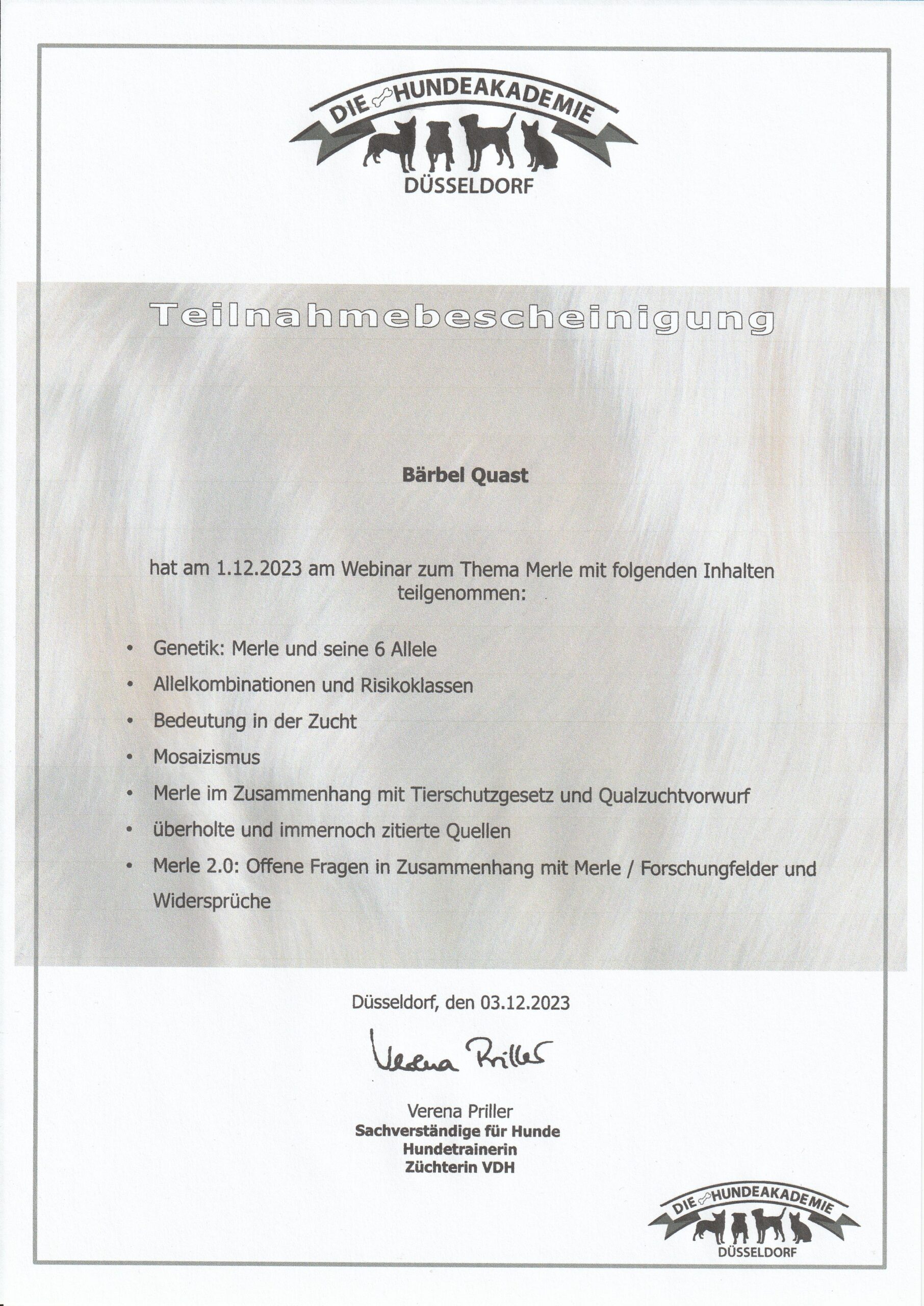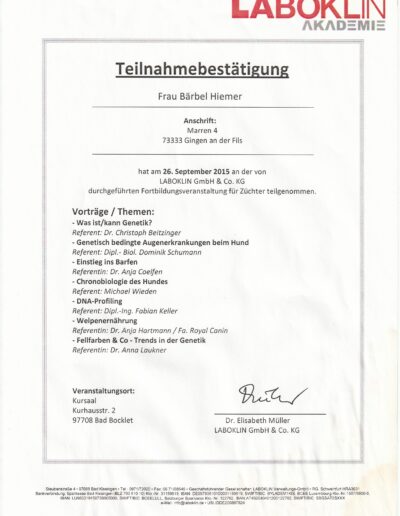 - Ernährungsberaterin für Hunde und Katzen nach Dr. Jutta Ziegler: Hier habe ich gelernt, wie wichtig eine ausgewogene Ernährung für die Gesundheit unserer Tiere ist.