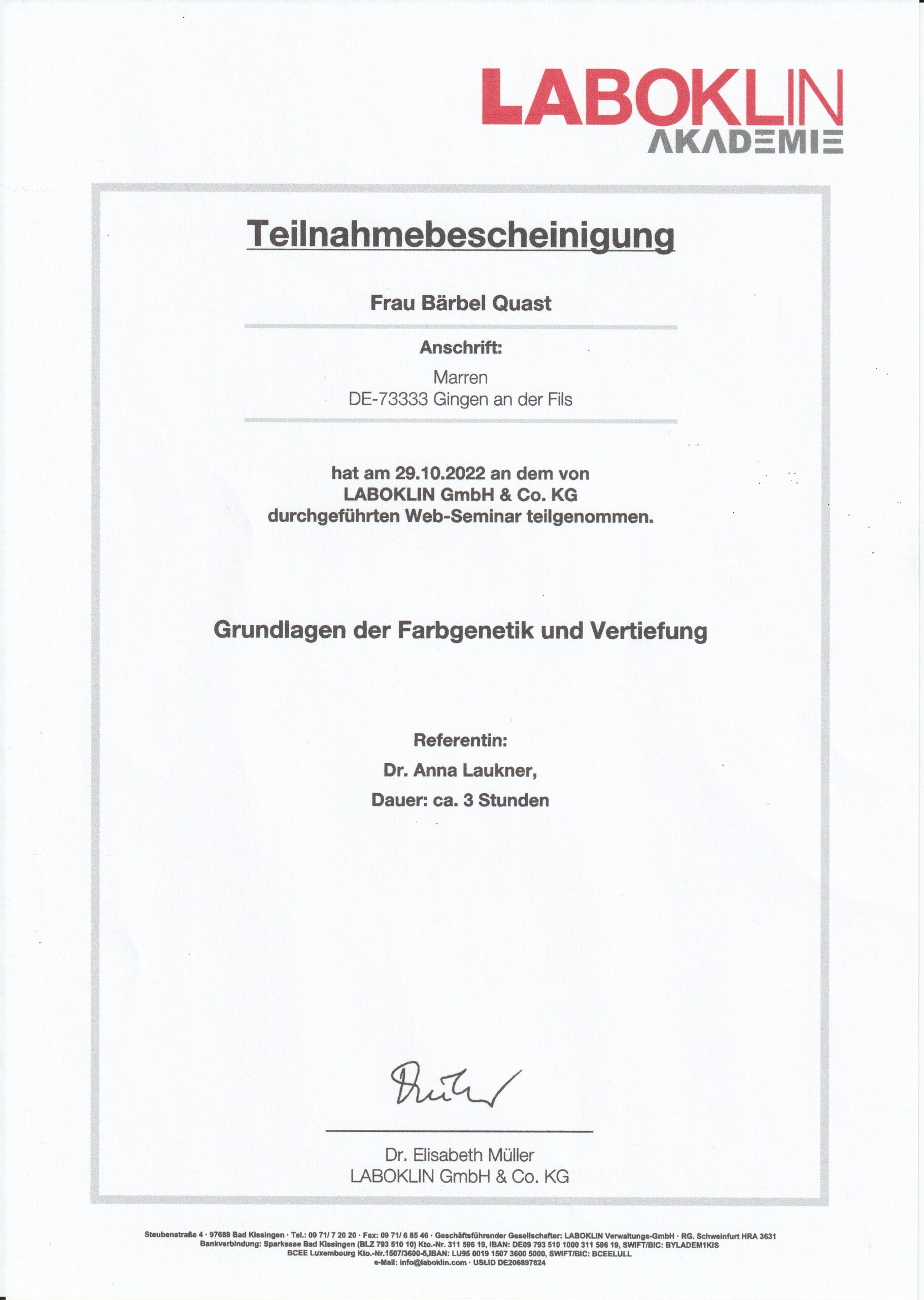 - Biofocus Gesellschaft für biologische Analytik mbH – Genetik: Diese Ausbildung hat mir wertvolle Einblicke in die genetischen Aspekte der Tierernährung gegeben.